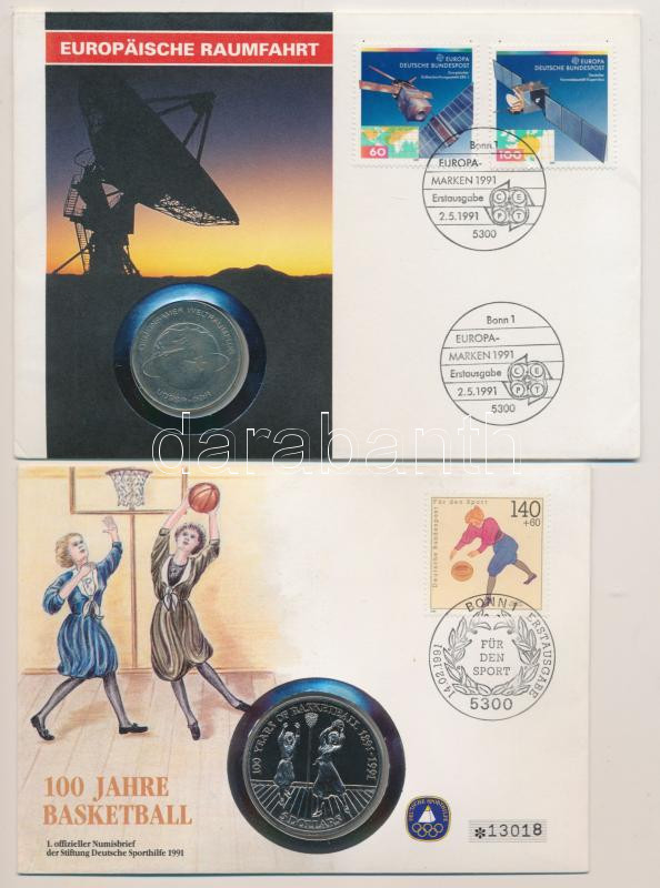 Description: NDK 1978A 10M "Közös űrrepülés" + Niue 1992. 5$ "100 éves a kosárlabda" érmés borítékon első napi bélyegzős bélyegekkel T:1,2