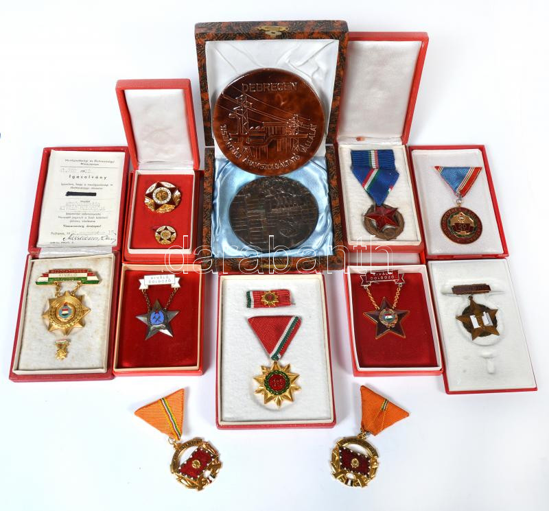 12db vegyes szocialista kitüntetés, emlékérem, többnyire tokban, miniatűrrel T:vegyes