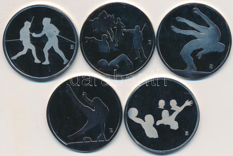 Papp László (1947-) 1992. "Barcelonai Olimpia- Magyar Csapat" (5x) ezüstözött emlékérmek dísztokban (42,5mm) T:PP