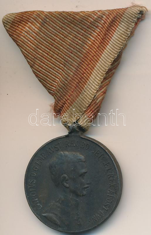 Description: 1917. Bronz Vitézségi Érem "IV. Károly / Fortitudini" mellszalagon. Szign: Kautsch T:2-