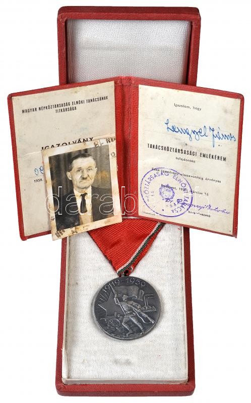 1959. "Tanácsköztársasági Emlékérem" ezüstszínű Br érem (38mm) mellszalaggal, viselésre jogosító igazolvánnyal dísztokban T:2