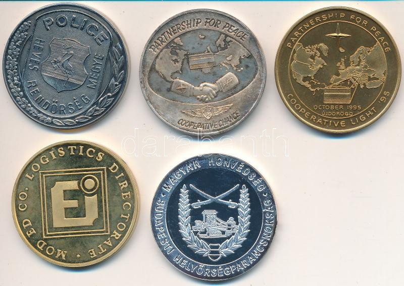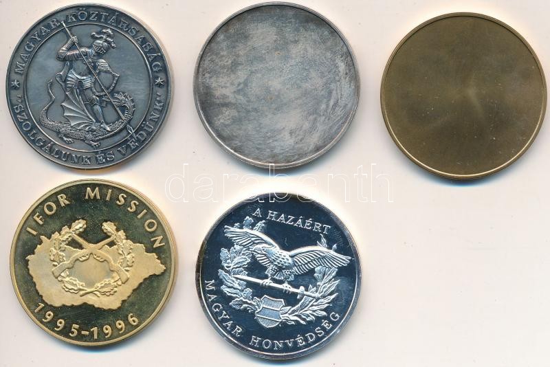 5db különféle magyar és külföldi militária témájú emlékérem, közte tok...
