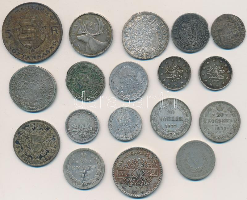 18db-os vegyes magyar és külföldi ezüstpénz tétel T:vegyes