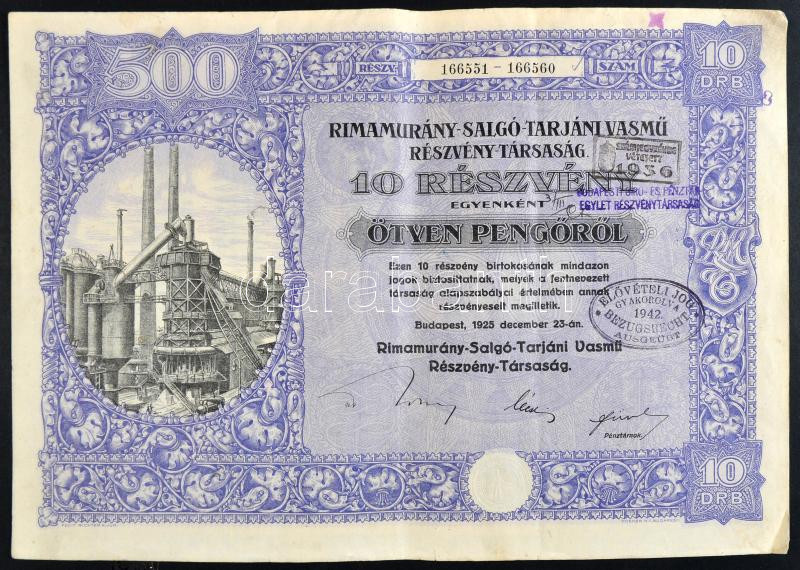 https://www.darabanth.com/en/212-Online-auction/212.0/Numismatics/Shares-and-Tickets~200005/Budapest-1925-Rimamurany--Salgo-Tarjani-Vasmu-Reszveny-Tarsasag-reszvenye-50P-rol-sz~II879733