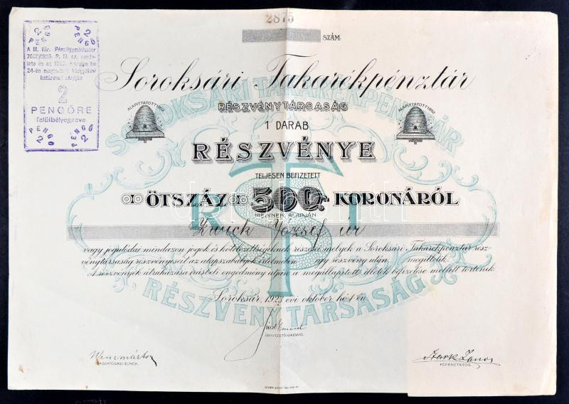 https://www.darabanth.com/en/212-Online-auction/212.0/Numismatics/Shares-and-Tickets~200005/Soroksar-1923-Soroksari-Takarekpenztar-reszvenye-500K-rol-szelvenyekkel-belyegzessel-T~II872986
