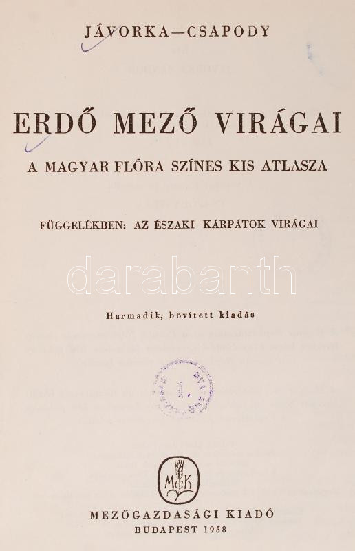 Jávorka-Csapody: Erdő mező virágai, A magyar flóra színes kis atlasza.... https://www.darabanth.com/en/212-Online-auction/212.0/Other-collectibles/Books-Science-and-technology~36/Javorka-Csapody-Erdo-mezo-viragai-A-magyar-flora-szines-kis-atlasza-Fuggelekben-az-Eszak~II878187
