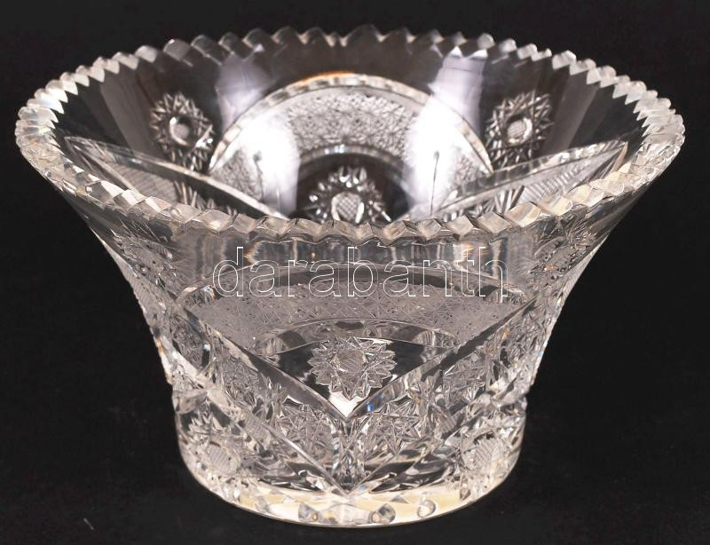 Csiszolt ólomkristály asztali kínáló, apró hibával, m: 11 cm, d: 18 cm