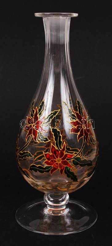 Festett virágmintás borosüveg, dugó hiányzik, a festés szignózott, hibátlan, m: 30 cm