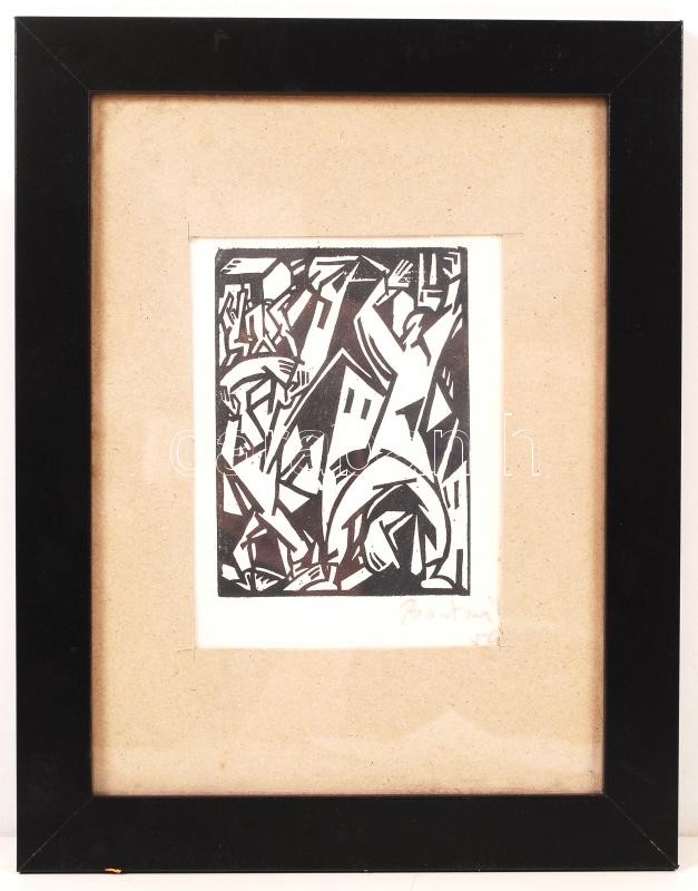 Bortnyik jelzéssel: Alakok. Linó, papír, üvegezett keretben 11×8 cm