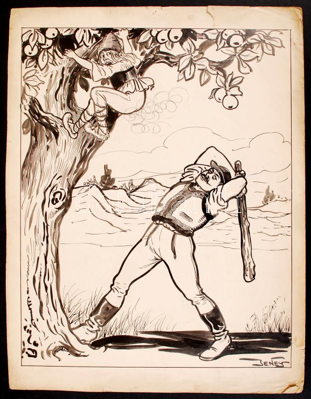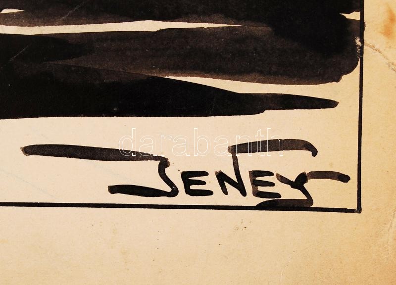 Jeney Jenő (1874-1942): Tettenérés. Vegyes technika, papír, jelzett, apró szakadások, 37×30 cm
