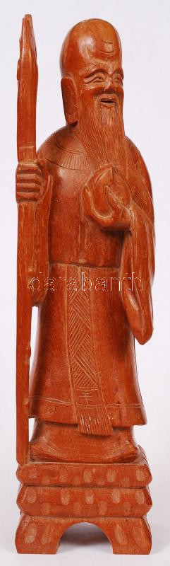 Shou Lao (a hosszú élet istene), faragott fa szobor, jelzés nélkül, m:37 cm