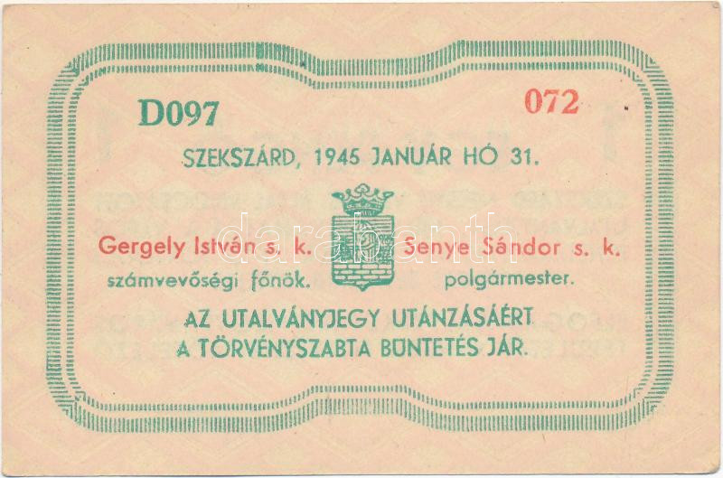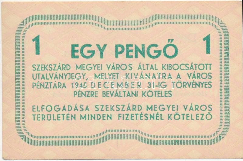 Szekszárd 1945. "Utalványjegy" 1P értékben T:I-