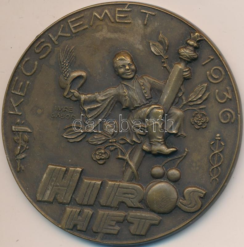 Imre Gábor (1890-1976) 1936. "Kecskemét Hírös Hét" Br emlékérem, szign...