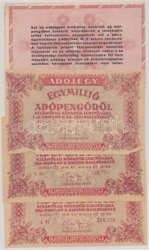 1946. 1.000.000AP (4x) egyik vágáshibával a maradék fordított címerrel...
