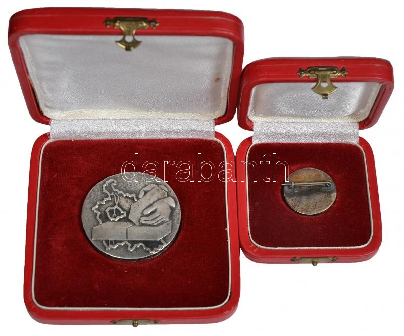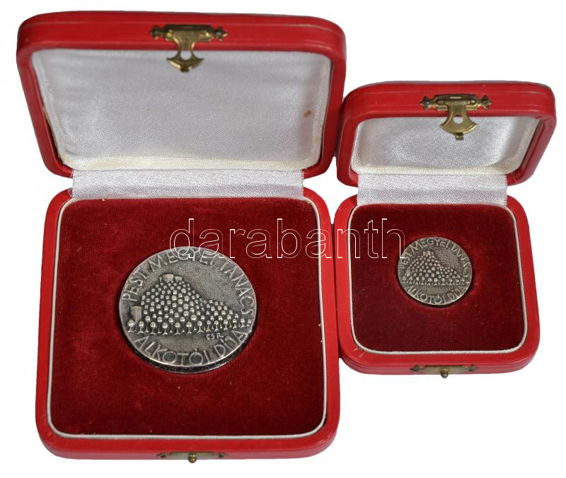 Description: Csikszentmihályi Róbert (1940-) 1978. "Pest Megyei Tanács Alkotói Díja" Ag emlékérem és jelvény, mindkettő dísztokban (100.47g/49mm és 15.11g/28mm) T:2