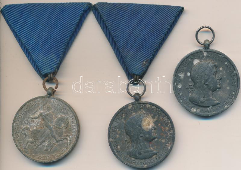 1940. "Erdélyi részek felszabadulásának emlékére" kitüntetés mellszalaggal és mellszalag nélkül. Szign.: BERÁN + 1941. "Délvidéki Emlékérem" cink emlékérem nem eredeti mellszalaggal. Szign.: BERÁN L. T:2-,3 korróziónyom, erősen szennyezett