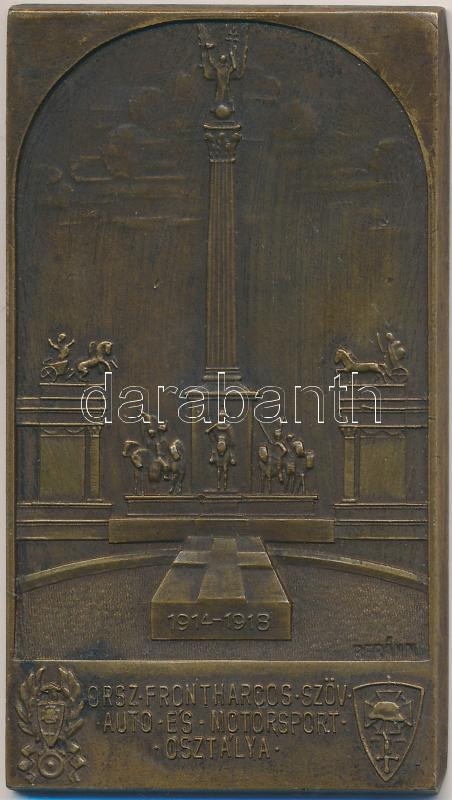 Berán Nándor (1889-1965) 1914-1918. "Országos Frontharcos Szövetség Auto- és Motorsport Osztálya" Br plakett (41x73mm) T:2 hátlapon forrasztásnyom