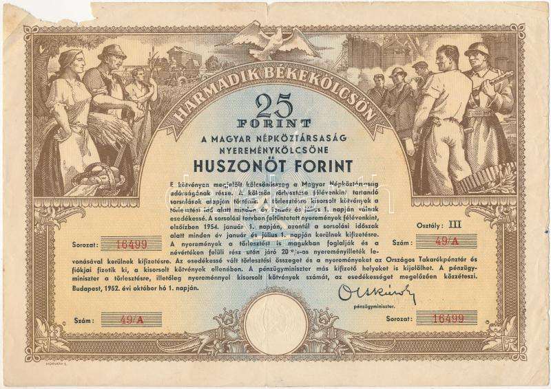 https://www.darabanth.com/en/213-Online-auction/213.0/Numismatics/Shares-and-Tickets~200006/1952-Harmadik-Bekekolcson-a-Magyar-Nepkoztarsasag-Nyeremenykolcsone-25Ft-rol-TIII-p~II890438