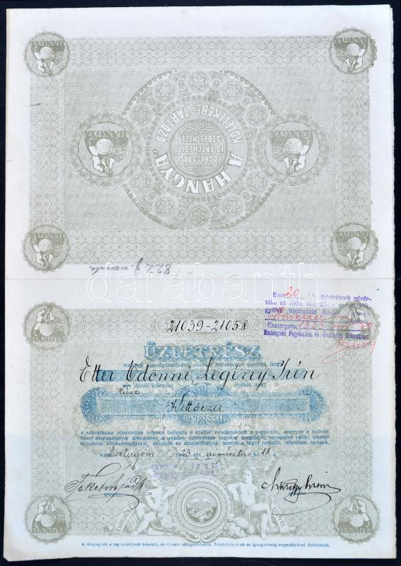 https://www.darabanth.com/en/213-Online-auction/213.0/Numismatics/Shares-and-Tickets~200006/Esztergom-1923-Esztergomi-Fogyasztasi-es-Ertekesito-SzovetkezetHangya-uzletreszjegye-20~II886548