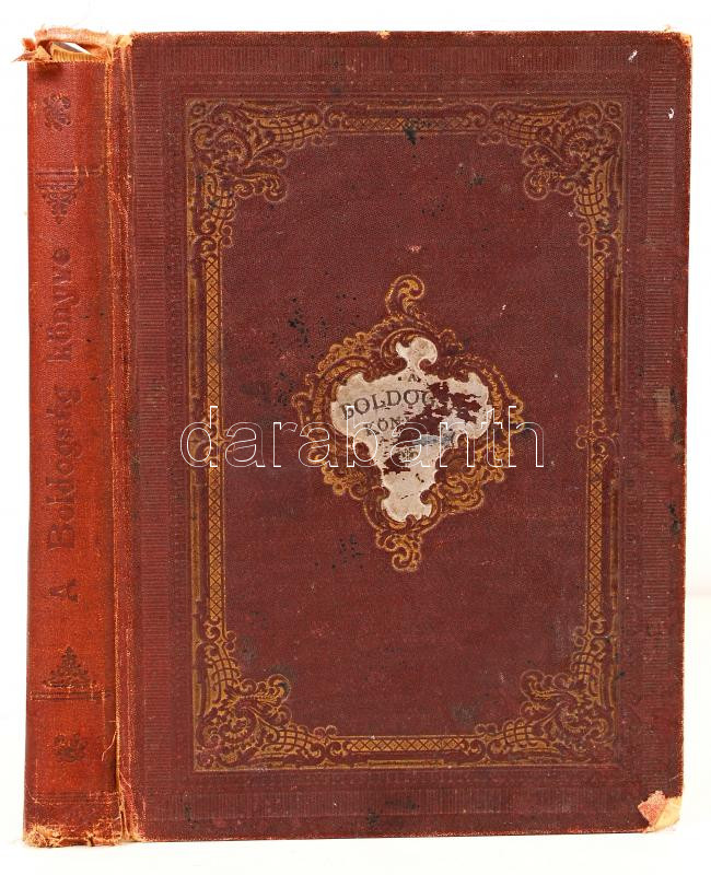 A boldogság könyve, Az ifjúság számára. A "Hasznos mulattató" és "Lányok lapja" melléklete. Bp., 1898, Werbőczy Könyvnyomda. Kiadói aranyozott, festett, dombornyomottt egészvászon kötés, gerincnél szakadt, belül levált, belső címlapja kijár, viseltes állapotban.