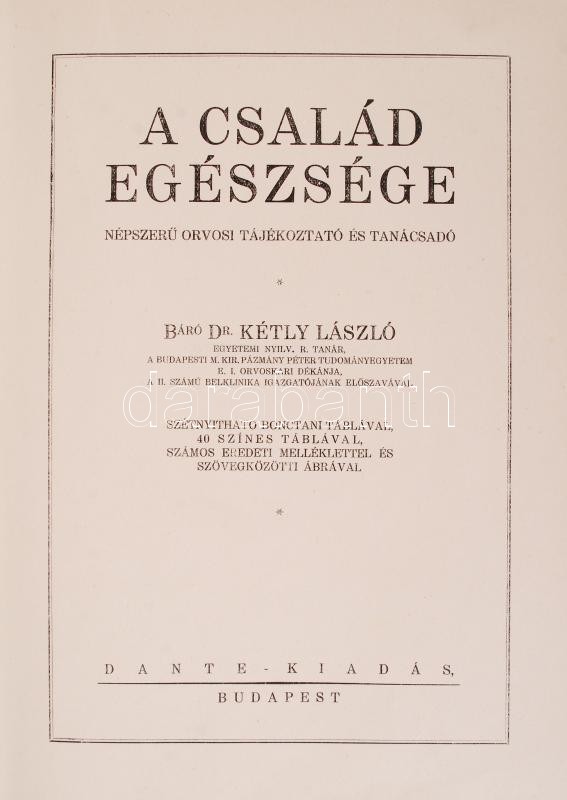 Báró Dr. Kétly László: A család egészsége. Népszerű orvosi tájékoztató... https://www.darabanth.com/en/213-Online-auction/213.0/Other-collectibles/Books-Science-and-technology~29/Baro-Dr-Ketly-Laszlo-A-csalad-egeszsege-Nepszeru-orvosi-tajekoztato-es-tanacsado~II892181