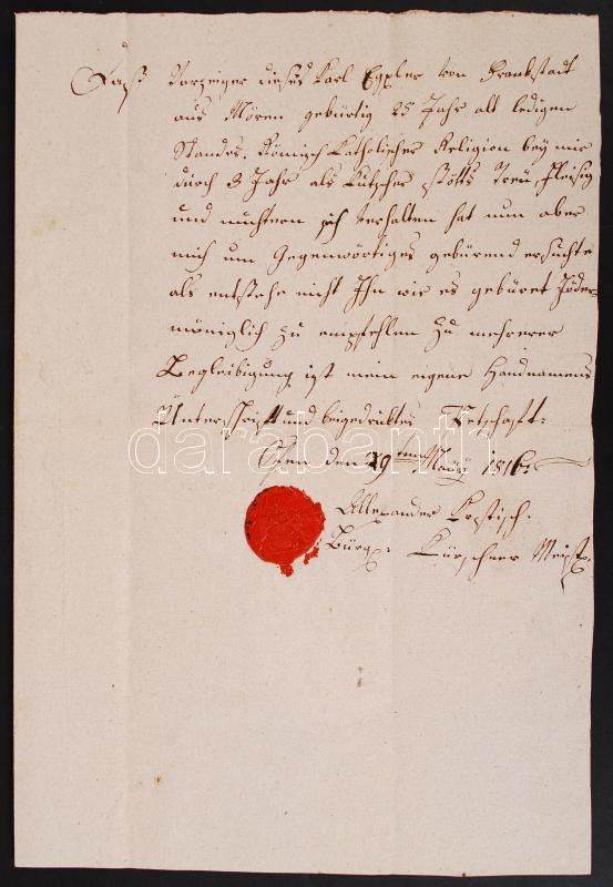 https://www.darabanth.com/en/213-Online-auction/213.0/Other-collectibles/Documents~24/1816-Buda-Alexander-Krstisch-szucsmester-igazolasa-kocsisa-reszere-pecsettel~II892286