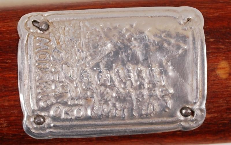 Díszített fa fokos bot, Morskie Oko fém jelvénnyel, gumi talppal, tetején sérült, h:89 cm
