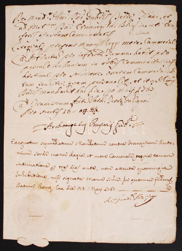 1767 Róma, Itáliai koleralevél bíborosi aláírással és szárazpecséttel