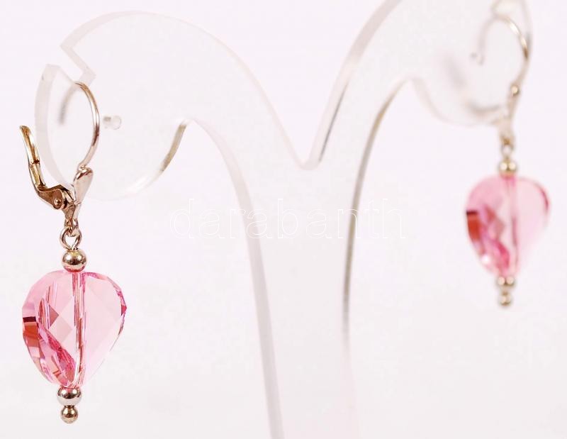 Ezüst (Ag) fülbevalópár rózsaszín csiszolt kristály díszítéssel, jelze...