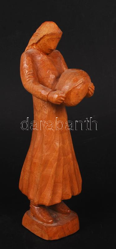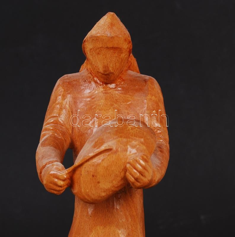 Tyukodi László (naív faragó): Lány kenyérrel. Faragott bükkfa, jelzett, jó állapotban, m:31 cm (Ürmössy-Haám gyűjteményből)