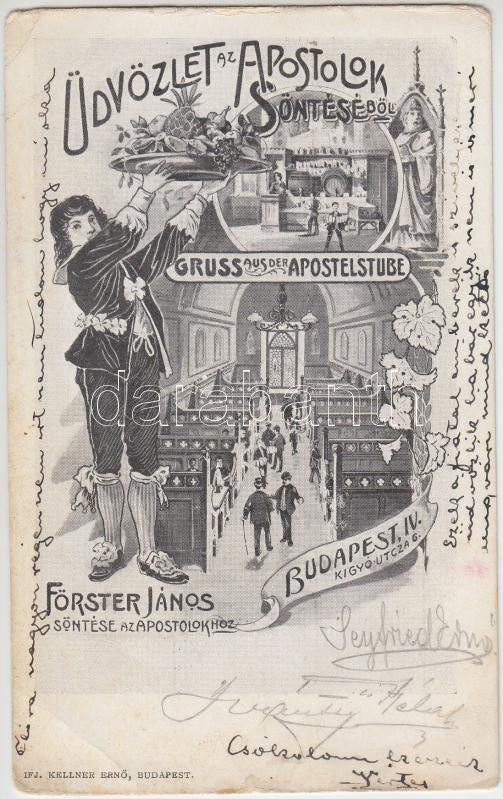Budapest V. Förster János söntése (söröző) az Apostolokhoz, belső, Art Nouveua, kiadja Kellner Ernő (EB)