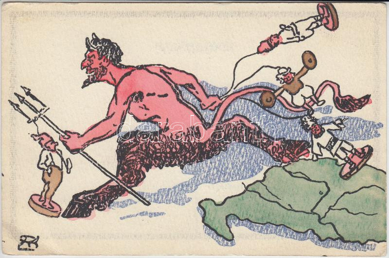 Megszállott részeken, a magyar így dörmög: Mikor viszen el már bennetek' az ördög...' / Krampus, irredenta propaganda (EK)