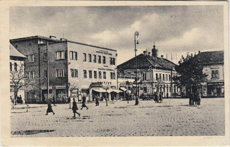 Érsekújvár, Főtér / Main square, bank, shops (EK)