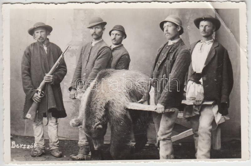 https://www.darabanth.com/en/213-Online-auction/213.0/Postcards/Transylvania~400007/Borszek-vadaszok-medve-Heiter-Gyorgy-fenykepesz-felvetele-es-kiadasa-hunters-bear-EB~II890334