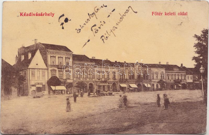 Kézdivásárhely, Főtér, Szőcs János, Dávid Antal, Jancsó Gyula üzletei, Turóczi István kiadása / Main square, shops