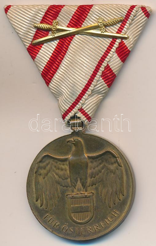 Description: Ausztria 1932. "Háborús Emlékérem 1914-1918" Br kitüntetés mellszalagon kardokkal Szign.: Grienauer T:2-