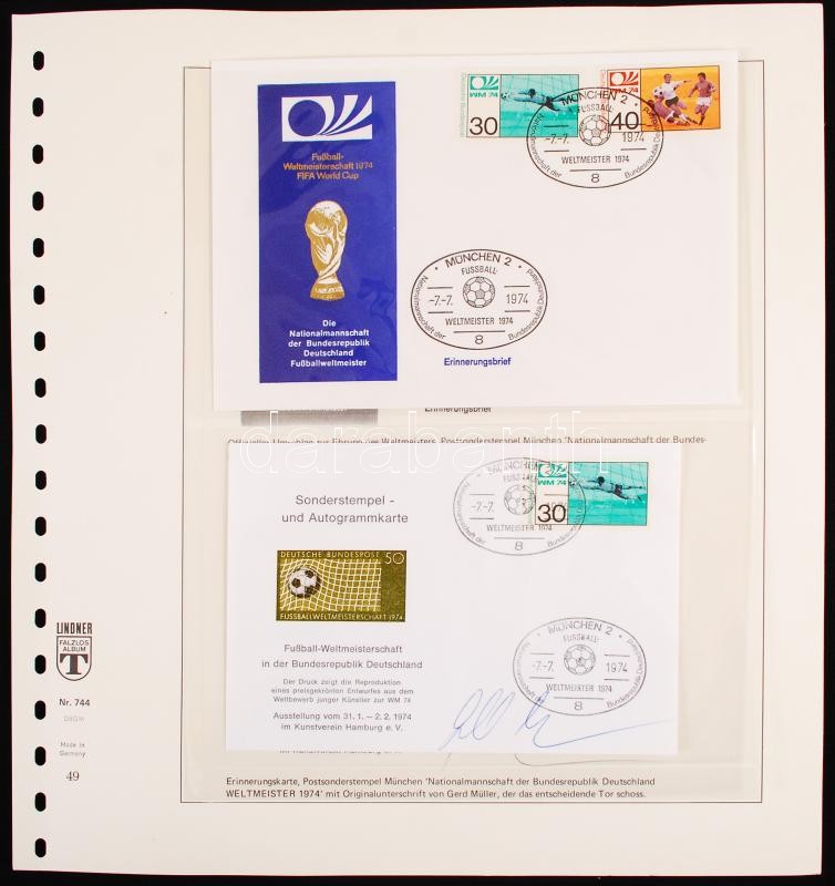 1974 Alkalmi borítékpár albumlapokra ragasztva az 1974-es VB-győztes német csapat játékosának, Gerd Müllernek aláírásával