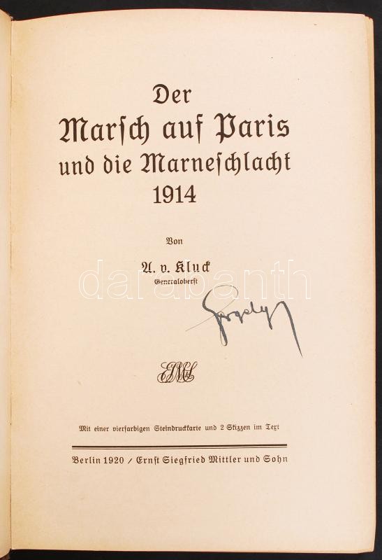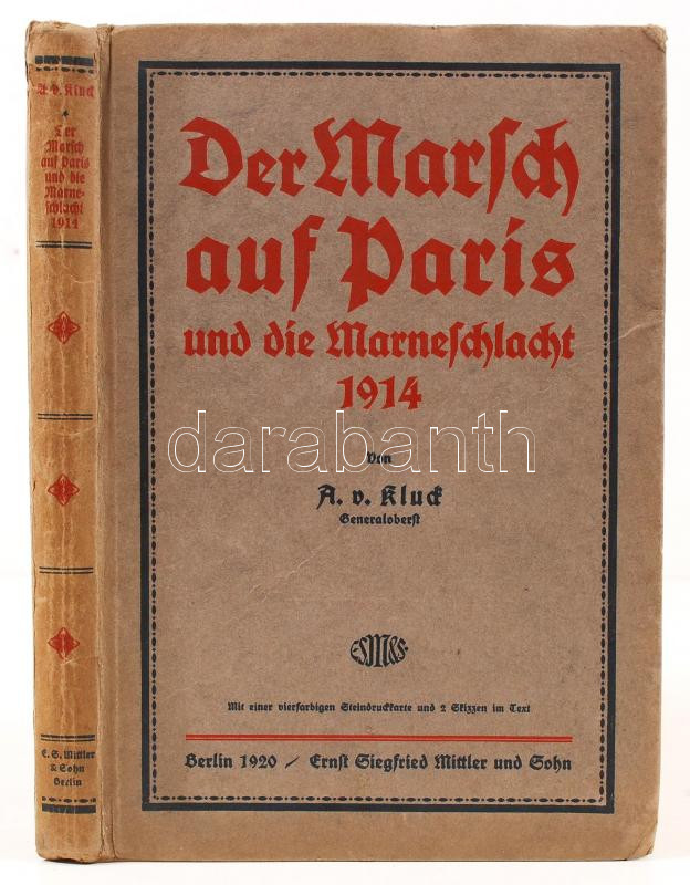 Alexander Heinrich Rudolph von Kluck: Der Marsch auf Paris und die Mar... https://www.darabanth.com/en/214-Online-auction/214.0/Other-collectibles/Books-Military~30/Alexander-Heinrich-Rudolph-von-Kluck-Der-Marsch-auf-Paris-und-die-Marneschlacht-1914-Berlin-1920~II859794