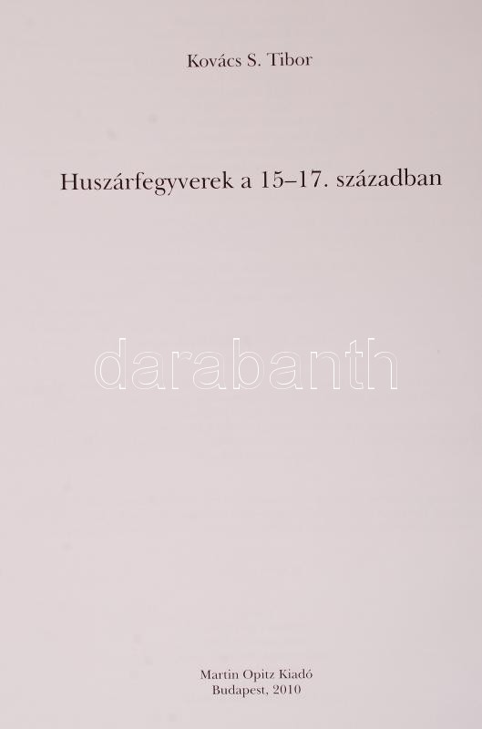 Kovács S. Tibor: Huszárfegyverek a 15-17. században. Bp., 2010, Martin... https://www.darabanth.com/en/214-Online-auction/214.0/Other-collectibles/Books-Military~30/Kovacs-S-Tibor-Huszarfegyverek-a-15-17-szazadban-Bp-2010-Martin-Opitz-Kiado-Kiadoi-kart~II897415
