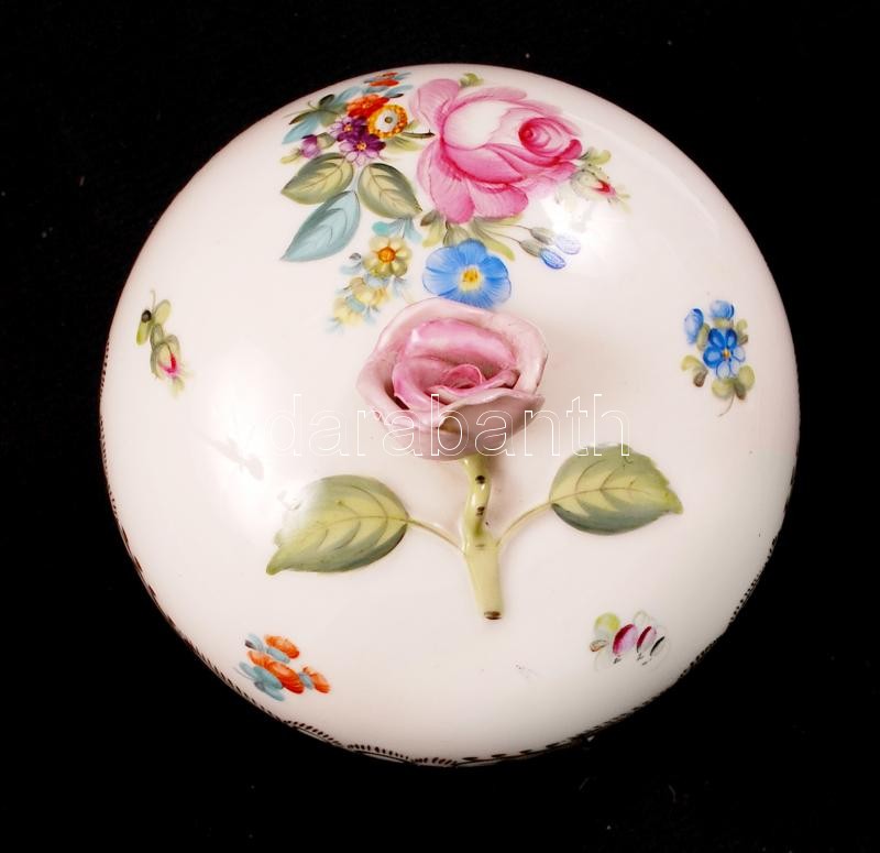 Herendi rózsás bonbonier, rózsán apró lepattanás, kézzel festett, jelz...
