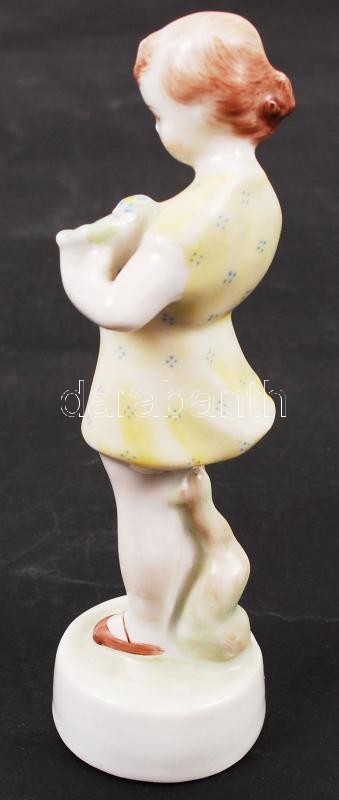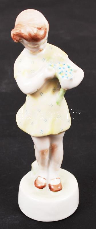 Zsolnay virágszedő lányka, hibátlan, m: 14 cm