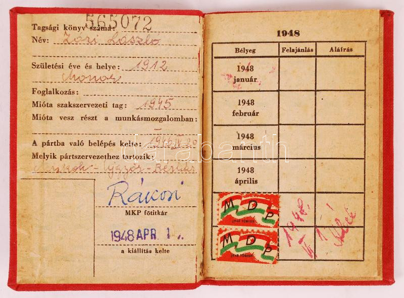 https://www.darabanth.com/en/214-Online-auction/214.0/Other-collectibles/Documents~18/1948-Magyar-Kommunista-Part-igazolvany-Rakosi-belyegzett-alairassal~II897800