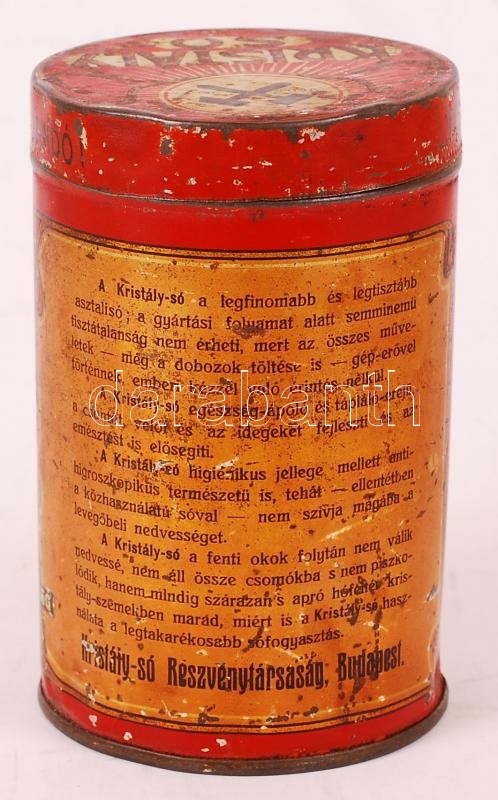 Kristály só feliratú régi fém doboz, m: 15 cm
