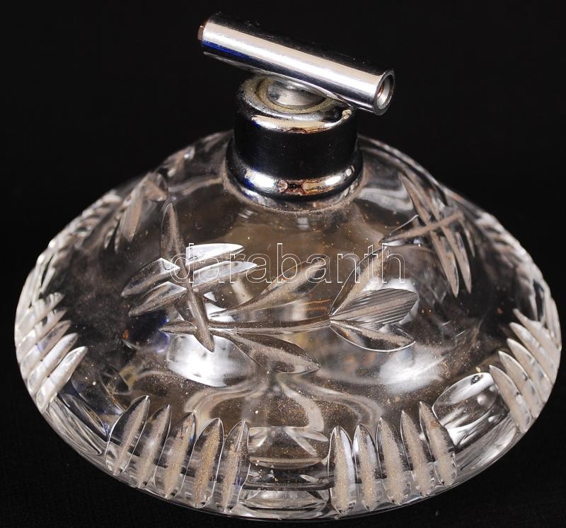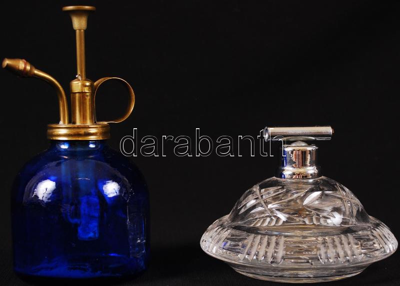 Régi pumpa nélküli parfümös és egy kék pumpás üveg, m: 8 és 15 cm