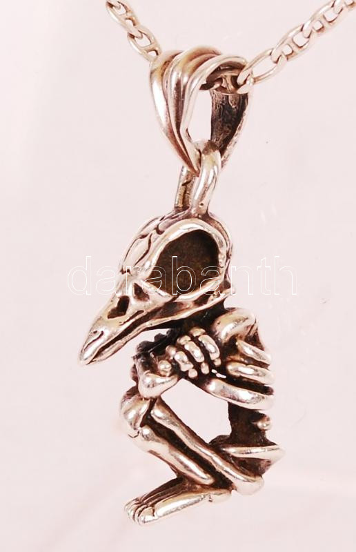 Ezüst (Ag) madárcsontváz medál ezüst (Ag) láncon, jelzett, h: 57 cm, 1...
