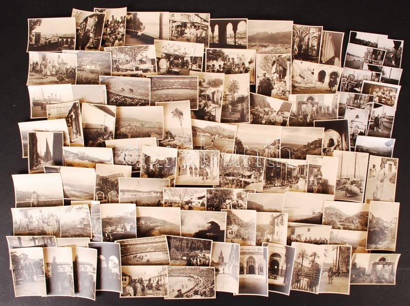 cca 1930-1940 Érdekes fotók egzotikus tájakról (Afrika, Dél-Európa), kb. 93 db, 6x4 és 8x6 cm-es méretben