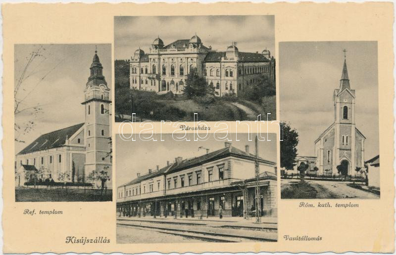 https://www.darabanth.com/en/214-Online-auction/214.0/Postcards/Hungary~200004/Kisujszallas-Reformatus-es-Romai-katolikus-templom-varoshaza-vasutallomas~II897039