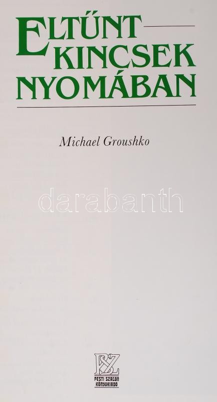 Groushko, Michael: Eltűnt kincsek nyomában. Bp., 1992, Pesti Szalon Kö... https://www.darabanth.com/en/215-Online-auction/215.0/Other-collectibles/Books-Other-rarities~37/Groushko-Michael-Eltunt-kincsek-nyomaban-Bp-1992-Pesti-Szalon-Konyvkiado-Kiadoi-kartona~II900914