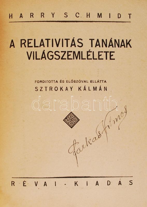 https://www.darabanth.com/en/215-Online-auction/215.0/Other-collectibles/Books-Science-and-technology~23/Schmidt-Harry-A-relativitas-tananak-vilagszemlelete-Forditotta-es-eloszoval-ellatta-Sztr~II902350
