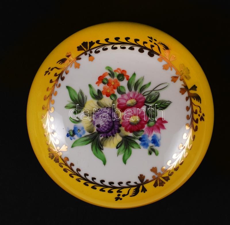 Herendi virágos bonbonier, kézzel festett, jelzett, hibátlan, d:11 cm,...
